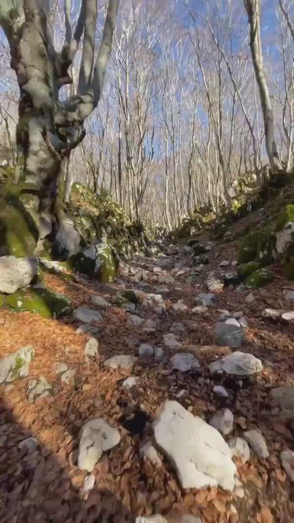 Il sentiero si sviluppa su fondo misto roccioso accidentato, sterrato e sottobosco